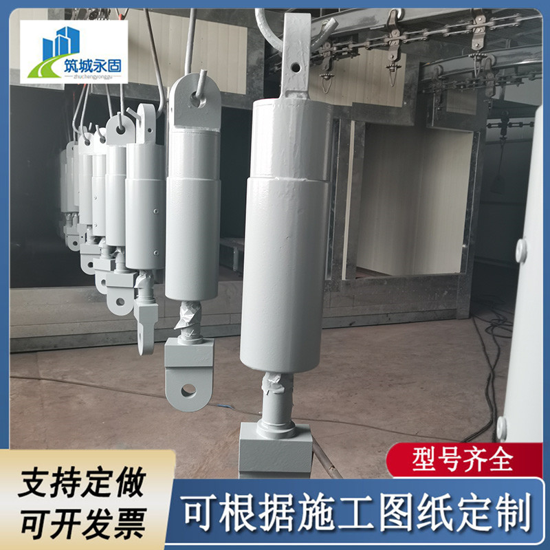 基本原理:粘滯阻尼器是利用粘滯流體和阻尼器結(jié)構(gòu)部件的相互作用產(chǎn)生阻尼力的原理設(shè)計(jì)、制作的一種速度相關(guān)型結(jié)構(gòu)消能減振裝置。當(dāng)工程結(jié)構(gòu)在荷載作用下發(fā)生振動(dòng)時(shí),使得安裝在結(jié)構(gòu)中的粘滯阻尼器的活塞與缸體之間發(fā)生相對(duì)運(yùn)動(dòng),由于活塞前后的壓力差使粘滯流體從阻尼通道中通過,從而產(chǎn)生阻尼力耗散外界輸入結(jié)構(gòu)的振動(dòng)能量,達(dá)到減輕結(jié)構(gòu)振動(dòng)的目的。粘滯阻尼器一般由缸套筒、活塞、阻尼介質(zhì)(粘滯流體)、活塞桿和關(guān)節(jié)軸承等部分組成。阻尼通道一般設(shè)置在活塞上,當(dāng)活塞運(yùn)動(dòng)時(shí)阻尼介質(zhì)通過活塞上的阻尼通道從而產(chǎn)生阻尼力。